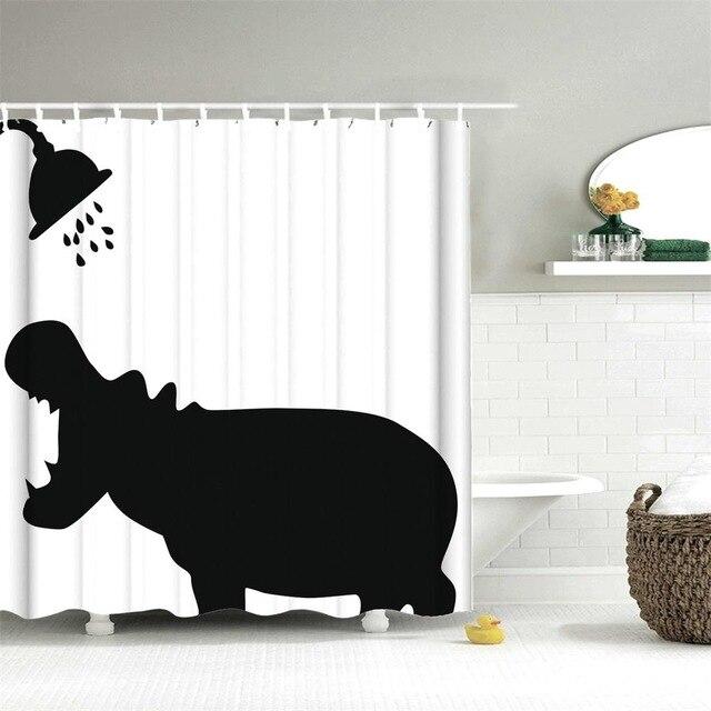 Zapomnij o nudnych i monotonnych łazienkach! Przedstawiamy naszą **zabawną zasłonę prysznicową z hipopotamem**, która całkowicie odmieni atmosferę Twojej codziennej kąpieli. Wyobraź sobie, jak każdego ranka witasz uśmiechem tego uroczego olbrzyma, który radośnie bierze prysznic. Ta unikatowa zasłona to nie tylko praktyczny element wyposażenia, ale prawdziwe dzieło sztuki, które wprowadza do wnętrza lekkość, humor i odrobinę dzikiej natury. Idealna dla tych, którzy pragną dodać swojemu domowi osobistego akcentu i sprawić, by nawet proste czynności stały się okazją do radości. Jej minimalistyczny, czarno-biały design z sylwetką hipopotama pod prysznicem jest jednocześnie nowoczesny i ponadczasowy, doskonale komponując się z różnymi stylami wnętrz.